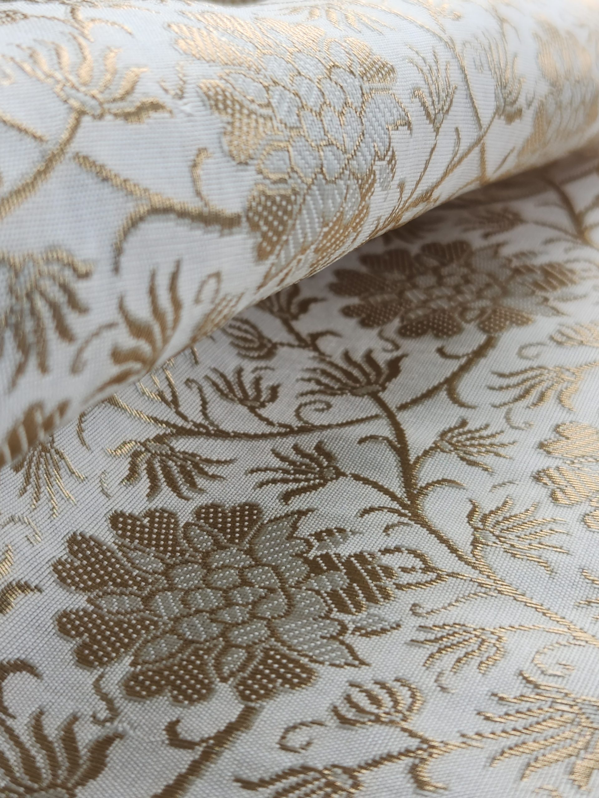 Fancy Banaras Brocade is a type of fabric that is intricately woven using high-quality silk or brocade threads. It originated from the city of Banaras, India and is known for its richness, elegance, and sophistication. This fabric is commonly used in making traditional Indian clothing like sarees, lehengas, and kurta pajamas. It is characterized by its unique designs, patterns, and colors that reflect the rich cultural heritage of India. If you’re looking for high-quality, beautiful Banaras Brocade fabric, then look no further than Fancy Banaras Brocade.