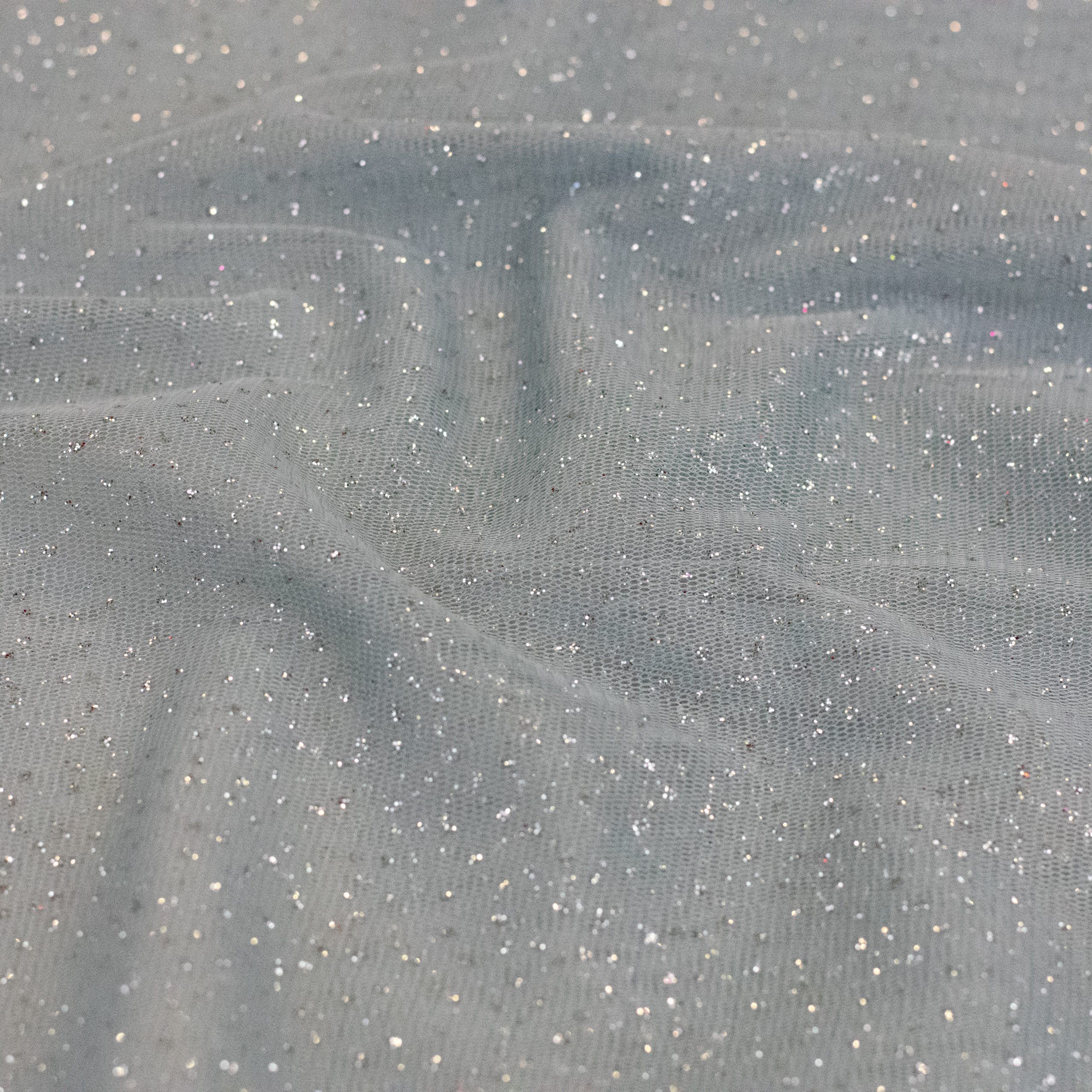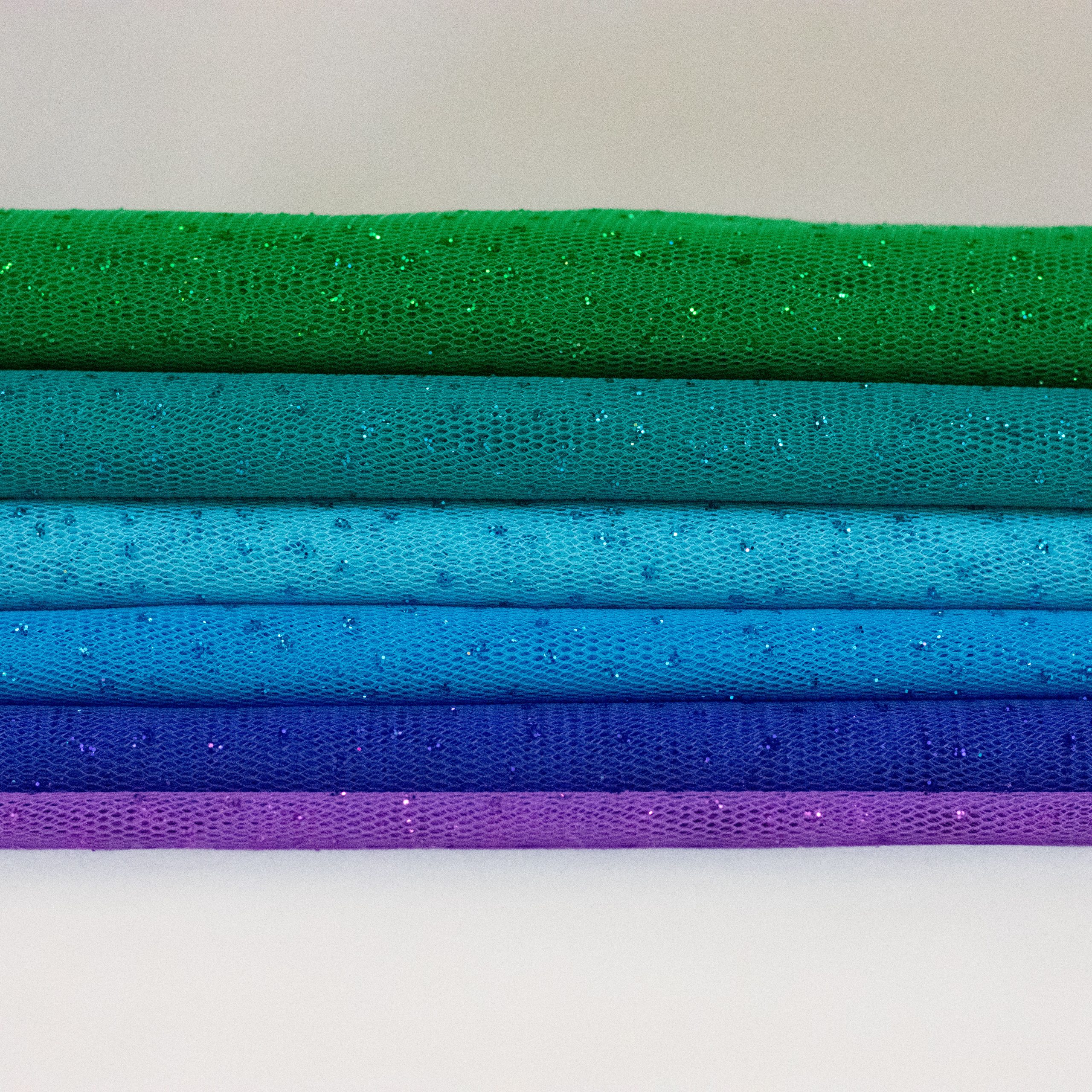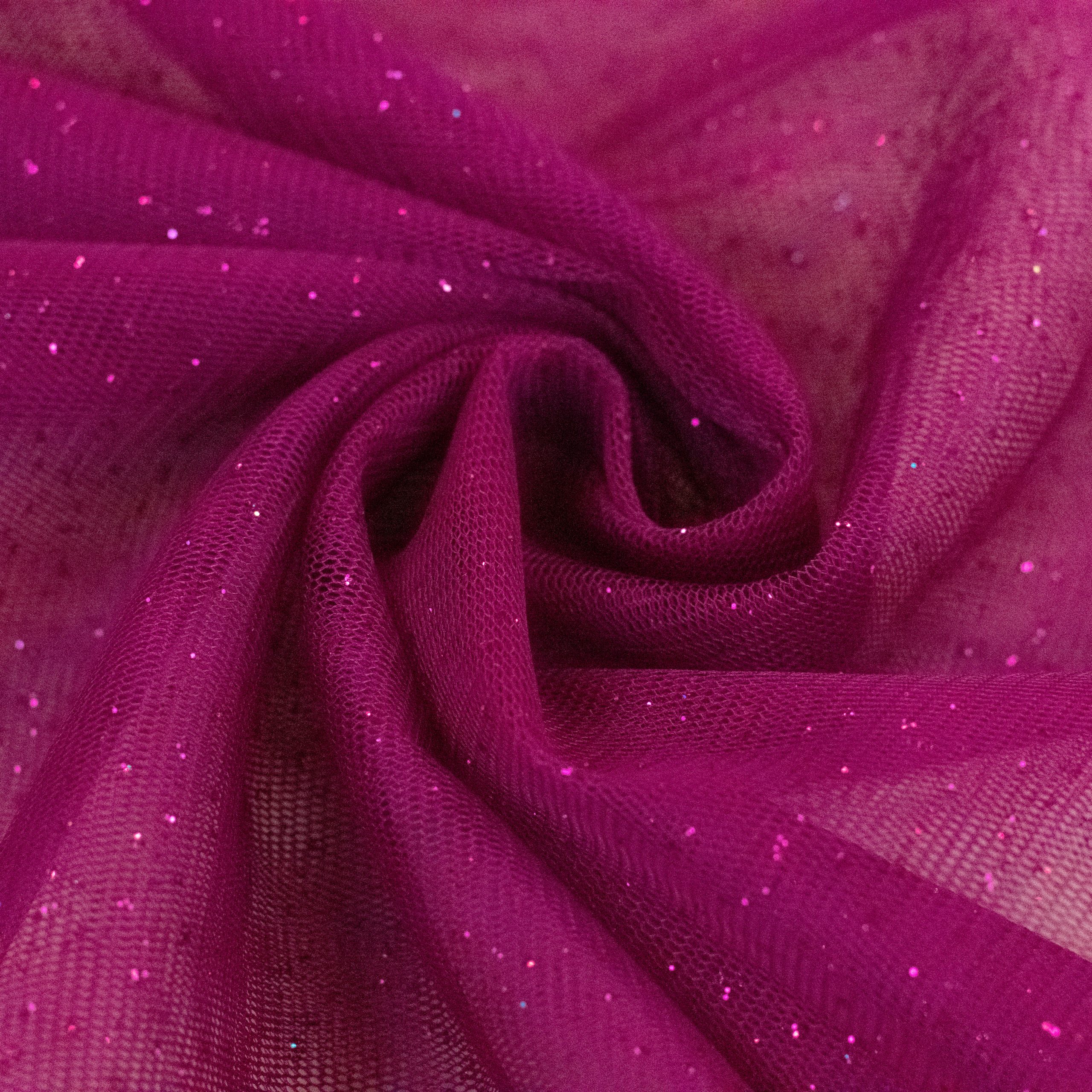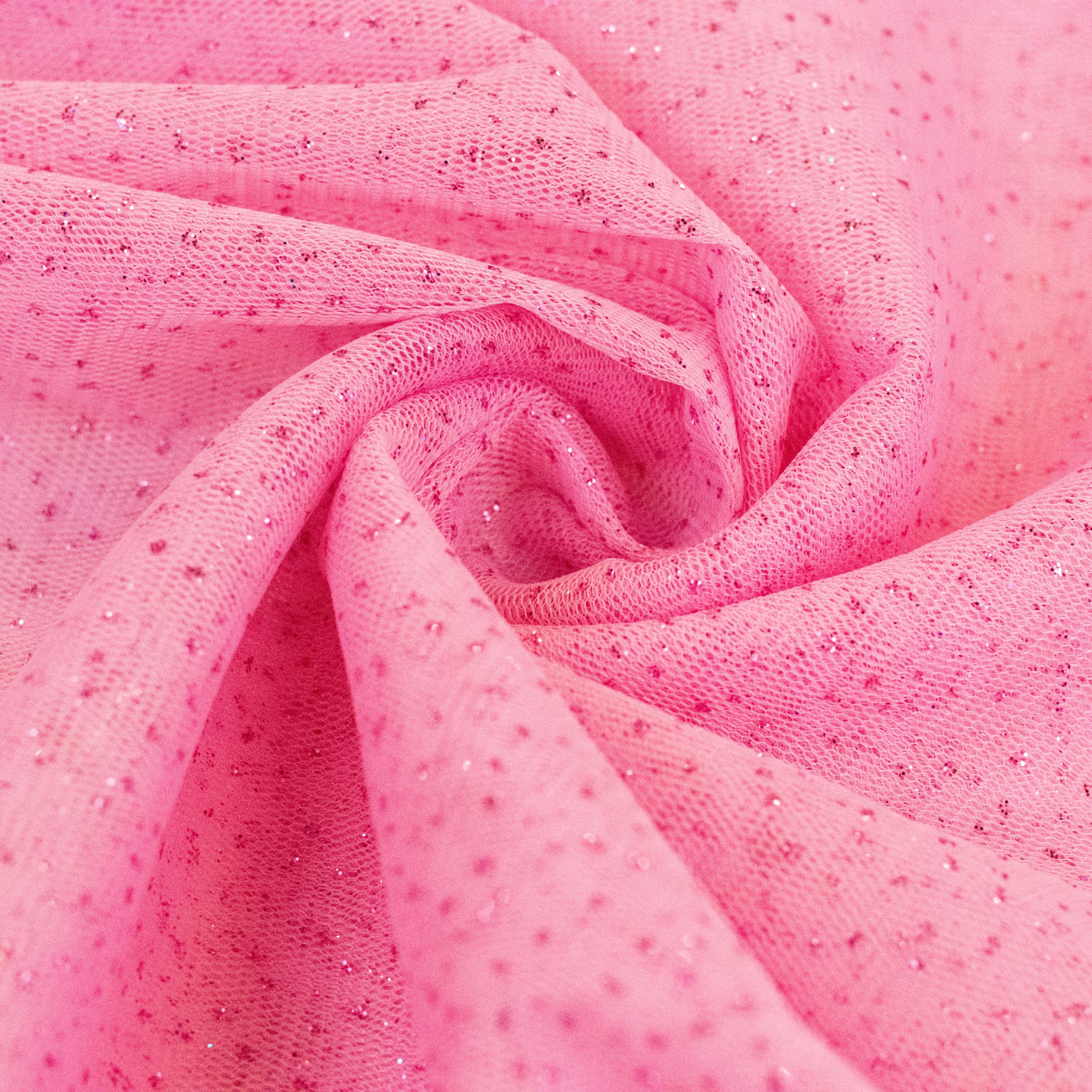 Glitter tulle is a type of fabric that is made from fine, lightweight netting material that has added sparkly glitter to add shine and glamour. It is commonly used in fashion design for creating dresses, skirts, and other clothing items. Glitter tulle is perfect for adding a touch of elegance to any project. It is available in a variety of colors and can be easily found at craft stores or online. Its delicate texture and unique sparkly effect make it a popular choice for special occasions like weddings, proms, and parties.