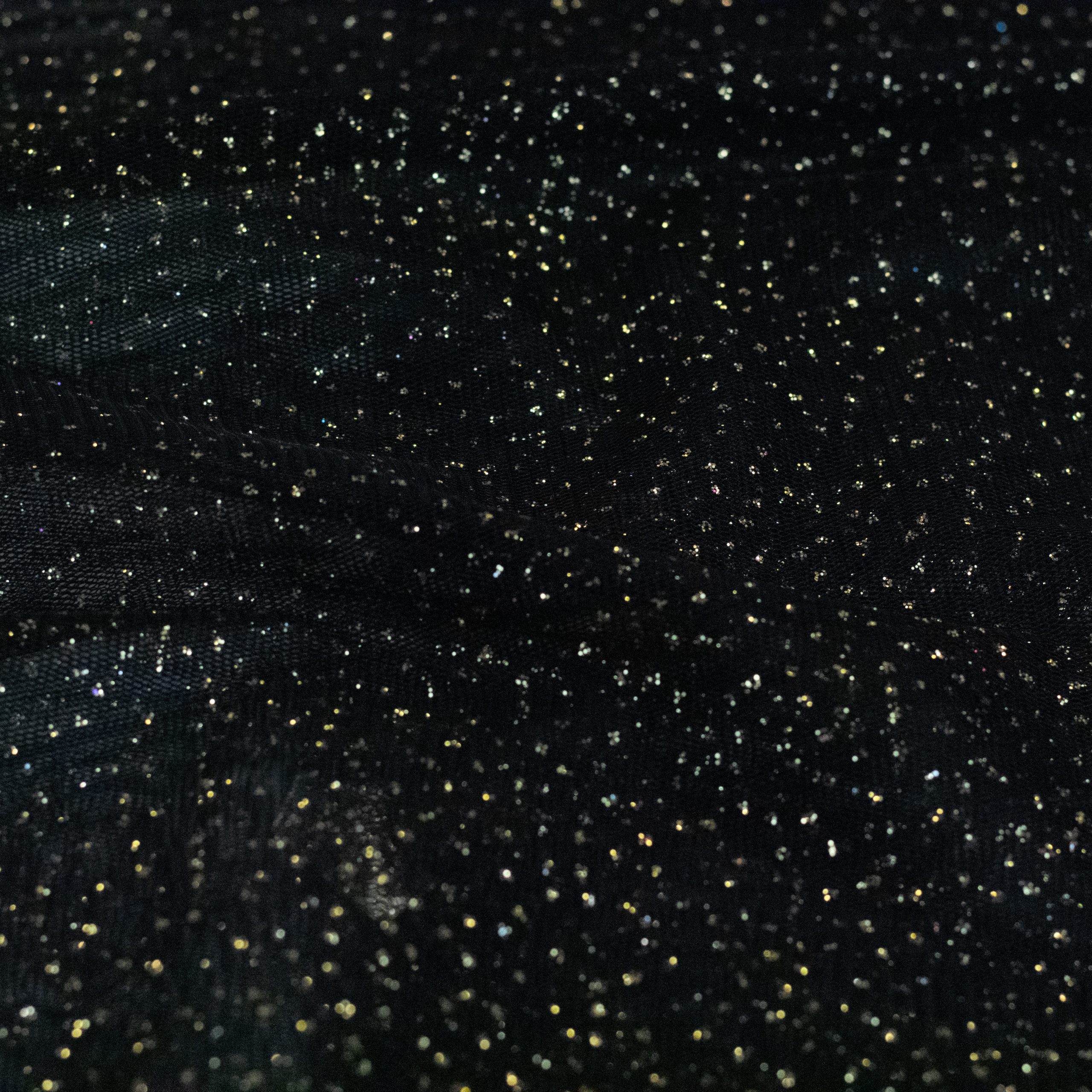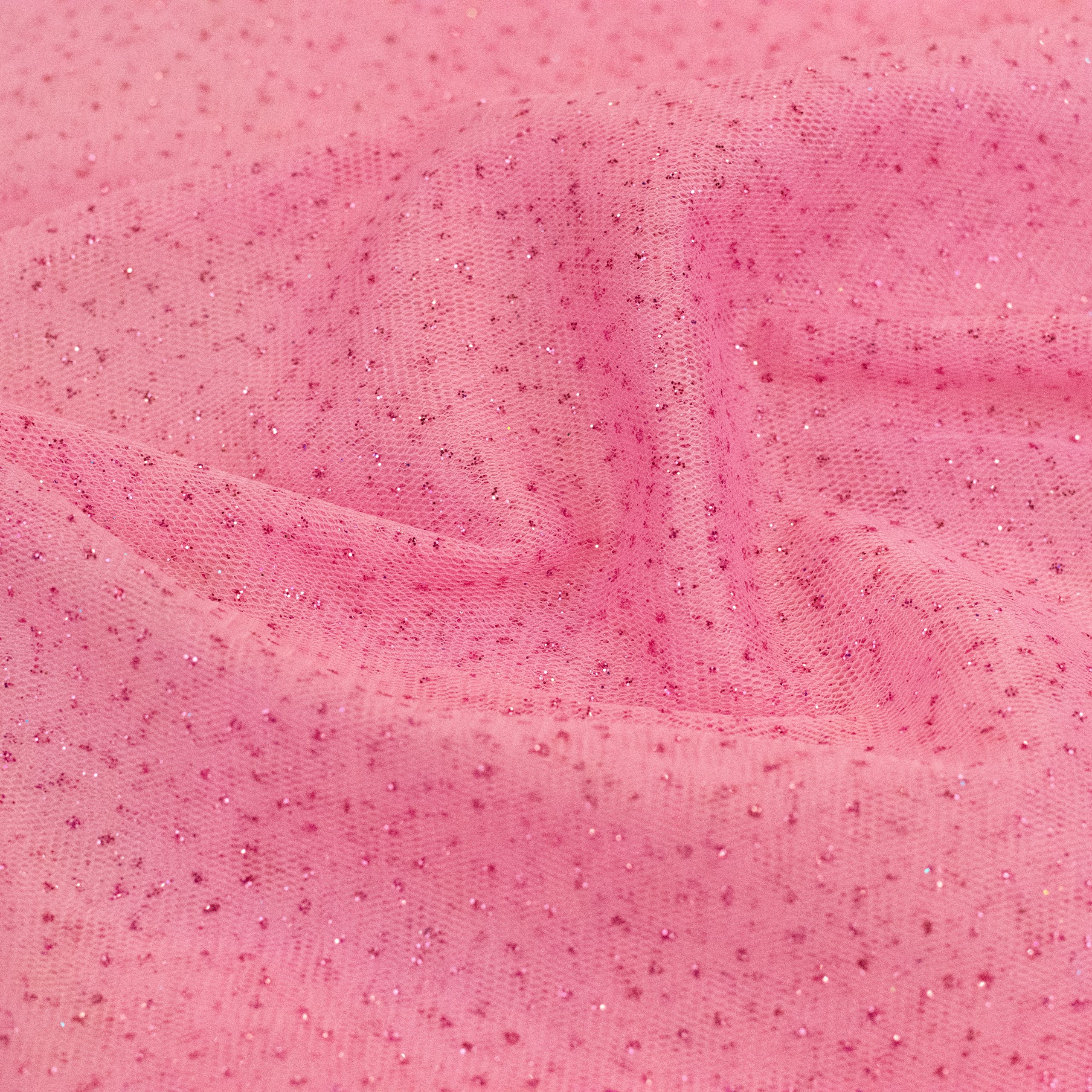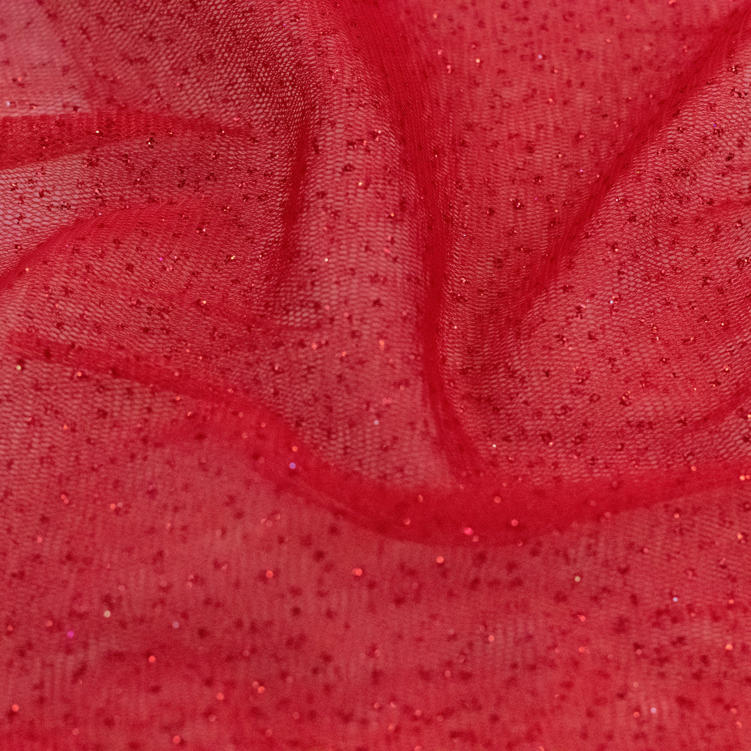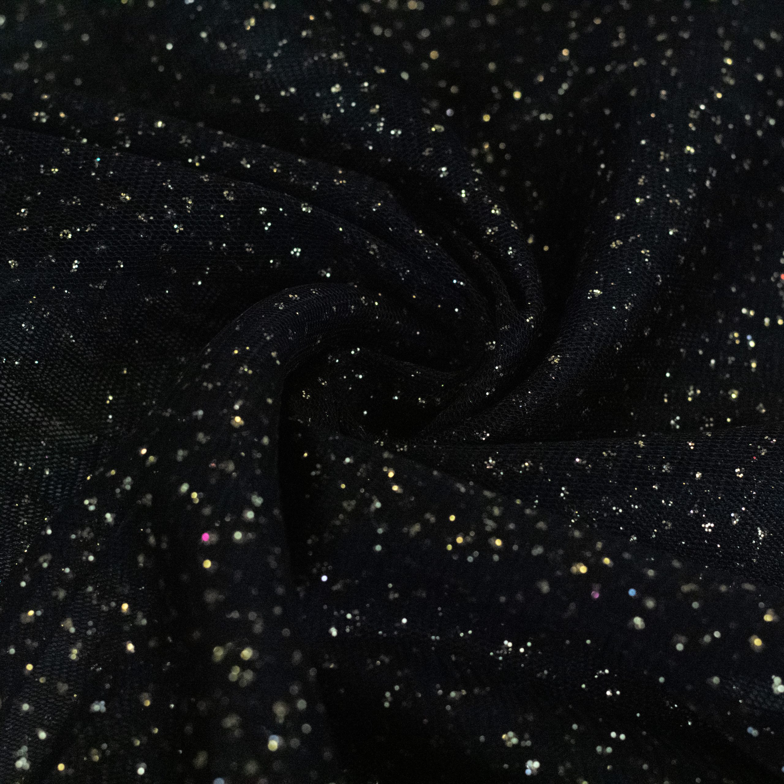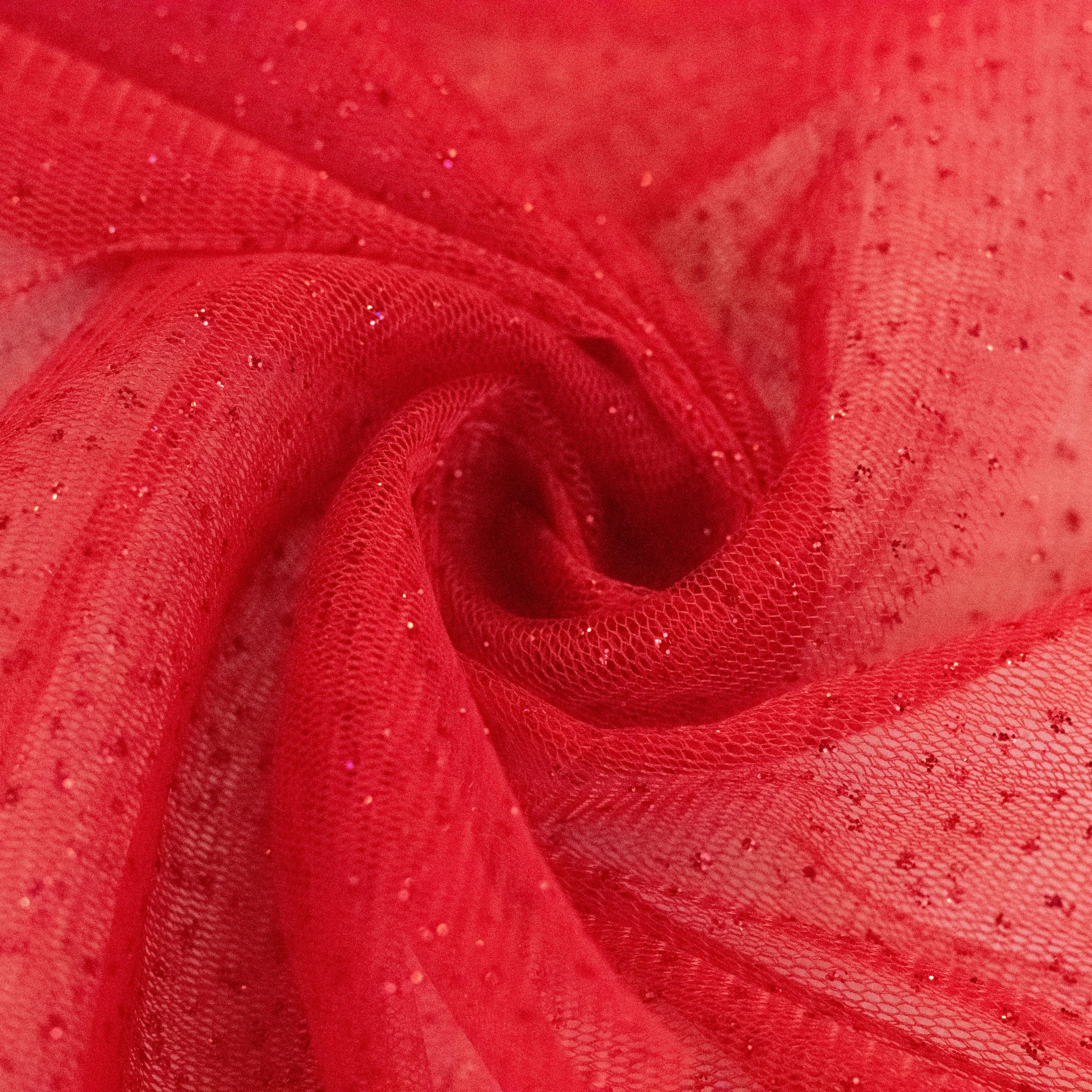 Glitter tulle is a type of fabric that is made from fine, lightweight netting material that has added sparkly glitter to add shine and glamour. It is commonly used in fashion design for creating dresses, skirts, and other clothing items. Glitter tulle is perfect for adding a touch of elegance to any project. It is available in a variety of colors and can be easily found at craft stores or online. Its delicate texture and unique sparkly effect make it a popular choice for special occasions like weddings, proms, and parties.