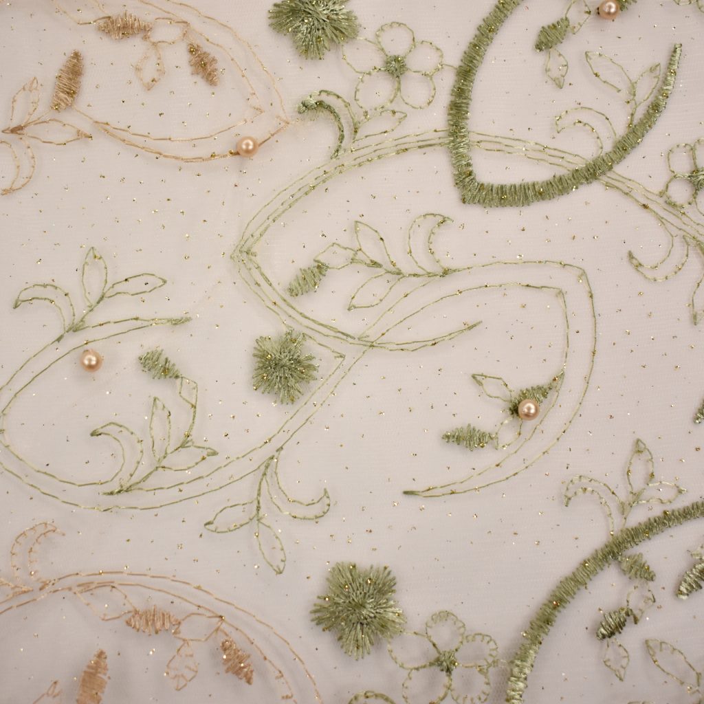 Pearl Emb Tulle is a type of fabric that has pearls and embroidery work on it. It is used for various purposes like bridal gowns, evening dresses, curtains, and home decor. It adds an elegant and luxurious touch to any item it’s used on. Popular in the fashion industry, Pearl Emb Tulle is a versatile fabric that can be used for both formal and casual occasions. This fabric is highly sought after due to its intricate detailing and subtle sheen. If you’re looking for a fabric to add some glamour to your project, Pearl Emb Tulle is an excellent choice.